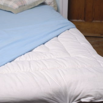 Topsy Farms wool mattress toppers have a generous dimension and density that feels just right. Washed and carded pure wool encased in unbleached cotton is ideal for bedding. It is resilient (retains its “bounce”). It traps masses of air pockets, which insulate, maintaining body warmth, while wicking away moisture. Those air pockets enable the bedding to “breathe” (unlike man-made fibres) promoting natural body circulation and cool comfort. ~2.5" thick with elastic on all corners for ease of attachment.